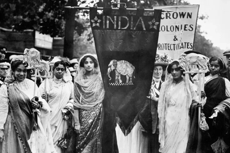 Image Details: Indian suffragettes in the Women's Coronation Procession, London, on June 17, 1911 [Museum of London/Heritage Images/Getty Images]